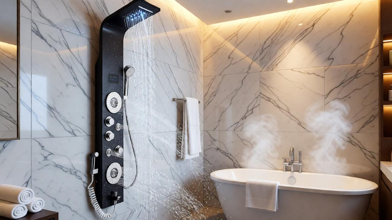 Upgrade your daily routine with a premium LED shower panel designed to deliver a true spa-level experience at home. Featuring six versatile water functions, this modern shower column combines rainfall, waterfall, massage jets, and more — all crafted in durable stainless steel with a sleek black nickel finish.